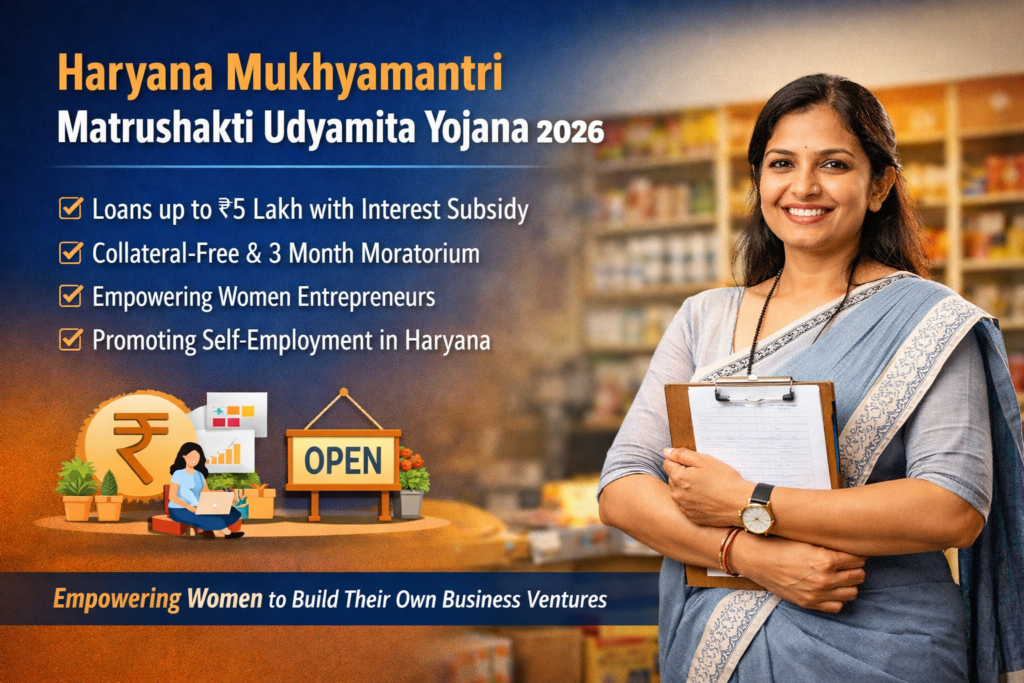 The Haryana Mukhyamantri Matrushakti Udyamita Yojana is a state government initiative designed to support women in starting their own businesses. Under this scheme, eligible women can avail financial assistance in the form of loans with relaxed conditions, helping them become self-reliant and financially independent.
