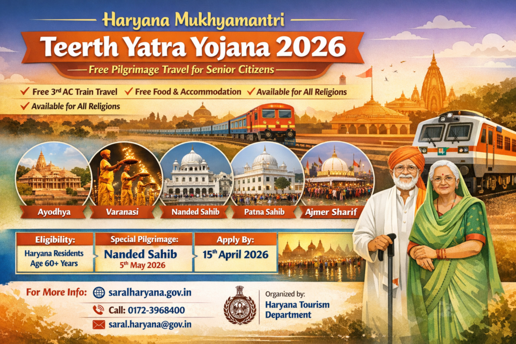 The Haryana Government has launched the Mukhyamantri Teerth Yatra Yojana to support senior citizens in fulfilling their spiritual journey dreams. This scheme provides free pilgrimage travel to selected religious destinations across India, ensuring that elderly citizens do not face financial barriers.